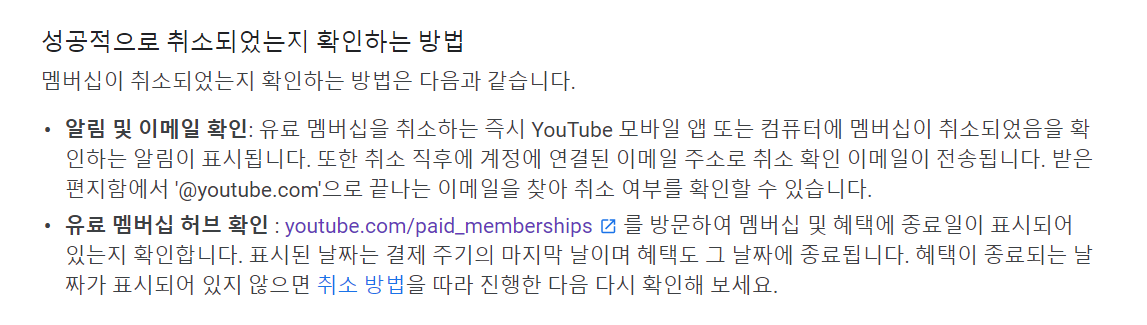 유튜브 고객센터에는 프리미엄 멤버십 취소에 대해 확인하는 법도 친절하게 알려준다. 그래도 혹시나 모르니 가지고 있는 계정에 대해 하나한 확인 할 필요성은 있어 보인다.